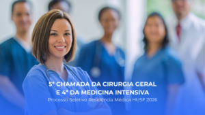 O HUSF abre novas chamadas do PROCESSO SELETIVO PARA A RESIDÊNCIA MÉDICA 2026, para os programas de Clínica Médica, Ginecologia e Obstetrícia e Pediatria. Ficam convocados os candidatos aprovados, na